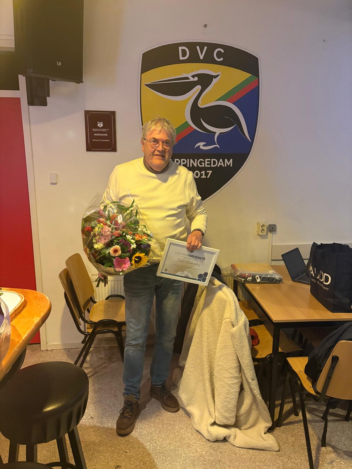 Daarnaast is er nog een lid benoemd tot lid van verdienste: Bert Noordhof. Bert is al jarenlang vrijwilliger bij de club, voorheen de Pelikanen. Het bestuur en de ledenvergadering zijn hem hier zeer erkentelijk voor.