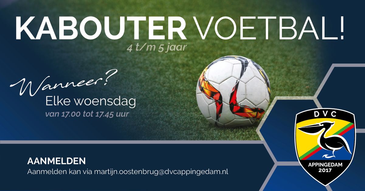 Kom spelen, rennen, schieten, scoren en juichen! Kaboutervoetbal is voor kinderen van 4 en 5 jaar om spelenderwijs in aanraking te komen met het leuke spelletje voetbal. Deelname is vrijblijvend en gratis.