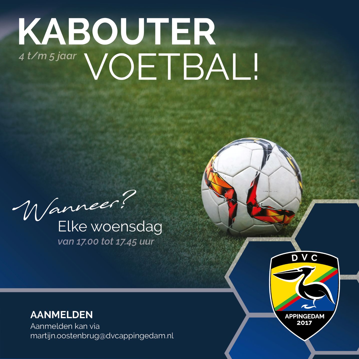 Kaboutervoetbal is er elke woensdag van 17:00 tot 17:45!